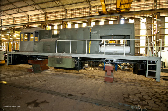 Estão apresentadas nas fotografias abaixo todo o processo de produção industrial da locomotiva EIF 1000, que é realizada na unidade industrial da EIF em Três Rios, R.J.